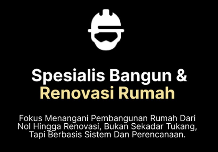 Fokus menangani pembangunan rumah dari nol hingga renovasi, bukan sekadar tukang, tapi berbasis sistem dan perencanaan.